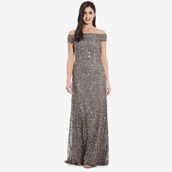 Adrianna Papell Off The Shoulder Sequin Beaded Gown Review