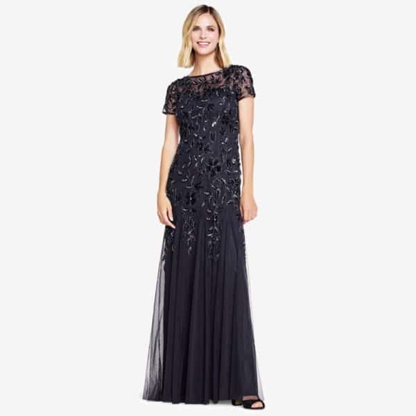 Adrianna Papell Hand Beaded Short Sleeve Floral Godet Gown Review