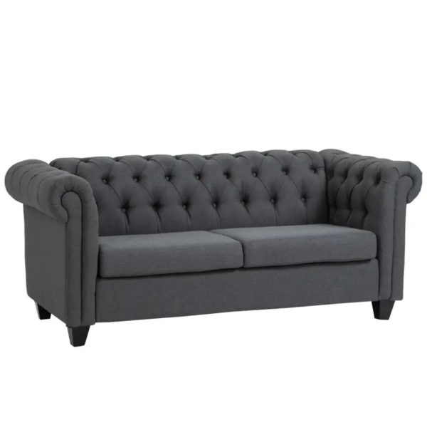 The timeless Homcom Retro 2-Seater Sofa in linen fabric with rubberwood legs features two comfortable seats for high comfort and deep button upholstery, as well as rolled armrests that look elegant and classic.