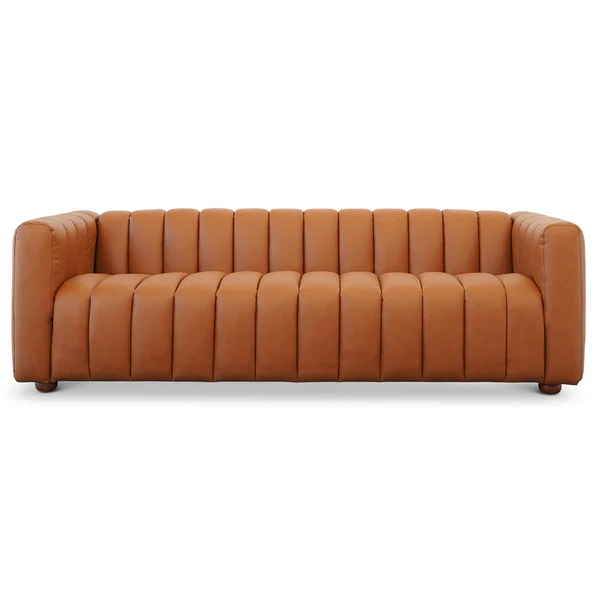 The Clara Cognac Vegan Leather Sofa by Mid in Mod combines timeless mid-century modern design with contemporary durability and comfort. With its upholstery in elegant cognac-colored vegan leather, this sofa not only looks elegant, but is also easy to clean and maintain.