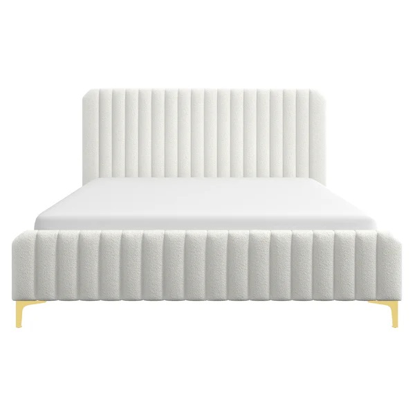 The Angela King Size Cream Bouclé Platform Bed from Mid in Mod brings a blend of modern elegance and cozy sophistication to your bedroom. With its soft, textured cream bouclé upholstery, this bed exudes warmth and luxury while maintaining a sleek, minimalist silhouette. The gently curved headboard offers both style and comfort, making it perfect for relaxing evenings.
