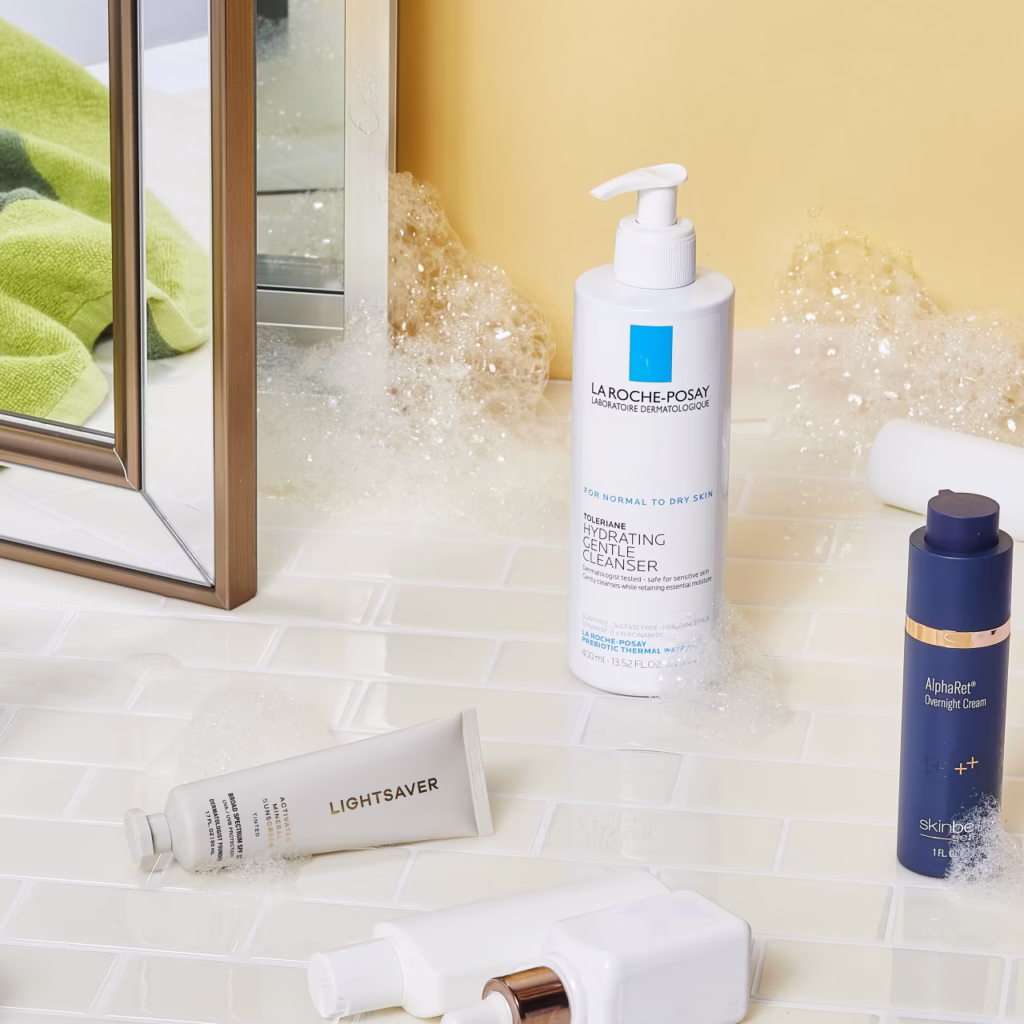 Start with a mild, sulfate-free cleanser that removes overnight oils without drying out the skin.